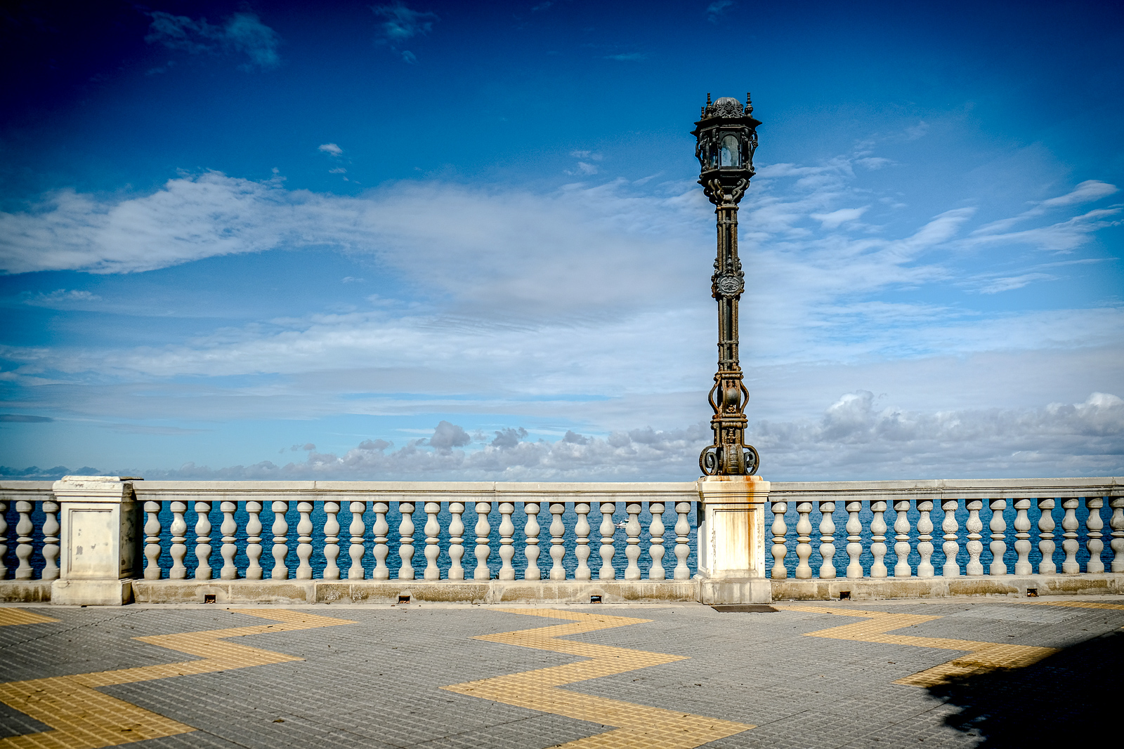 Weite Blicke über das Meer wechseln sich hier mit Details der historischen Bausubstanz ab. Laternen, Balustraden und Palmen gliedern den Weg entlang der Küste und setzen klare fotografische Akzente.