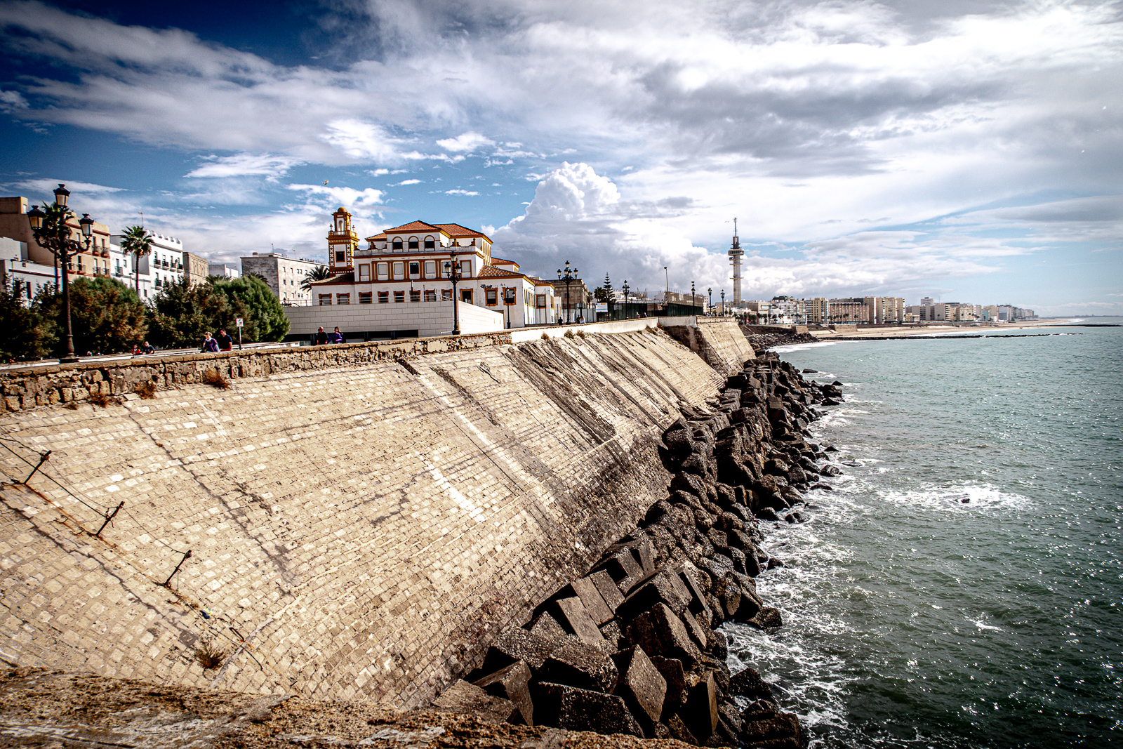 Die erste Foto-Tour in Cádiz führte mich entlang der Küstenpromenade, wo Stadt und Atlantik unmittelbar aufeinandertreffen.